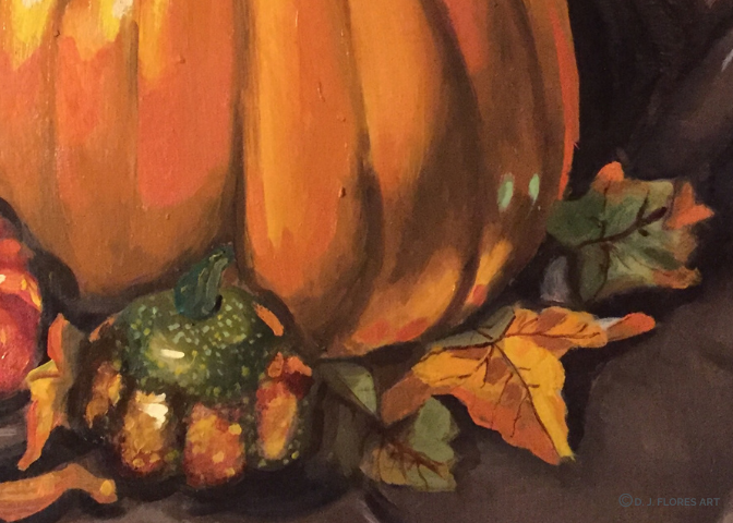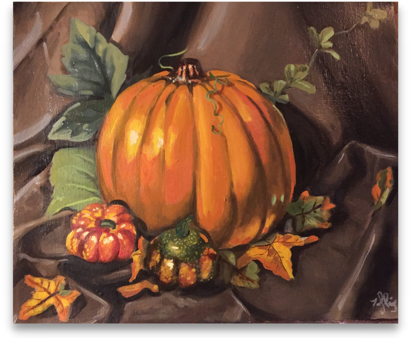 Inspired by the nostalgia of the season, this pumpkin decor still life invites you back to your best Autumn memories - trick or treating on a rainy night, family gatherings over feasts, and more. Preserve your memories with this addition to your art collection.